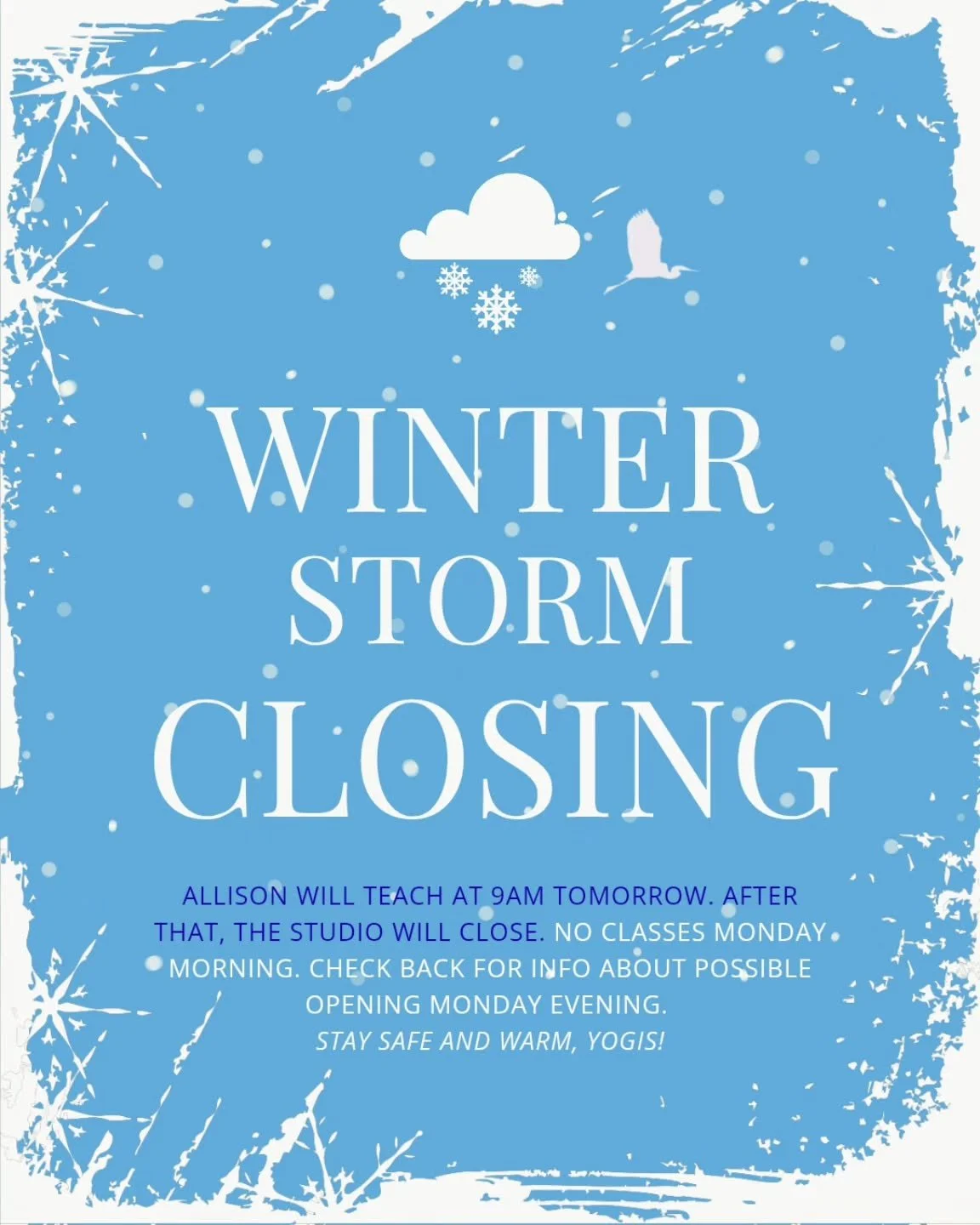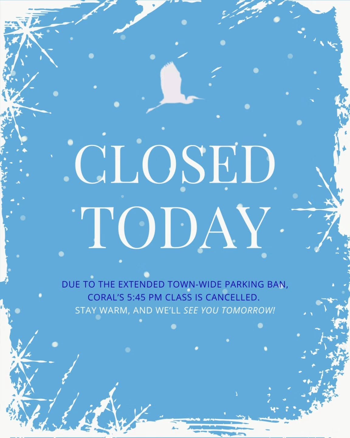 If the studio cancels your workshop, you will be promptly notified by email and/or phone and receive your choice of studio credit or a full refund.